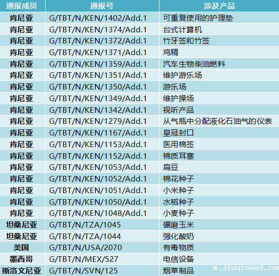 WTO技贸措施通报速递(11月24日)