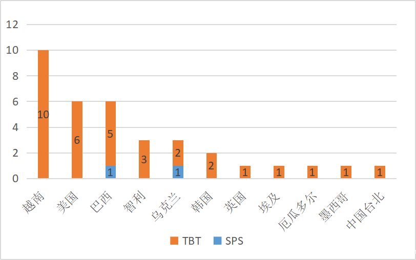 2024年6月14日,共有11个WTO成员通报35项技术性贸易措施,其中33项为TBT措施,2项为SPS措施。通报情况为:越南10项、美国6项、巴西6项、智利3项、乌克兰3项、韩国2项、英国1项、埃及1项、厄瓜多尔1项、墨西哥1项、中国台北1项。这些措施涉及电动升降机,制冷剂,轻型和中型车辆,生物制品,高压电力设施,化妆品,卫生用品,机动车安全玻璃等。通报详情如图表所示。
