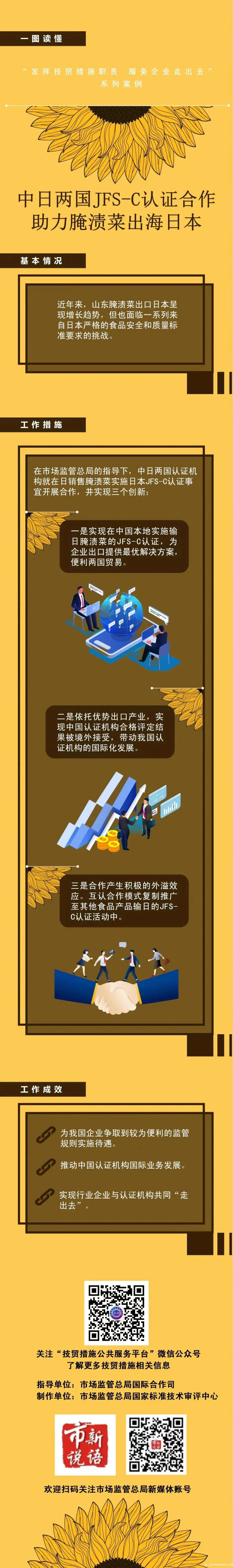 一图读懂丨“发挥技贸措施职责 服务企业走出去”系列案例:中日两国JFS-C认证合作助力腌渍菜出海日本